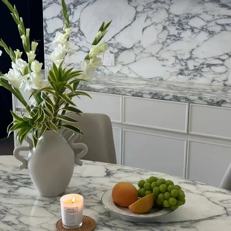Арабескато Каррара Мрамор, натуральный камень из Италии, известен своей вечной красотой и классической элегантностью. Его цветовая палитра состоит из мягких белых и пыльных серых, с изящными узорами, которые создают замысловатую вихрь, напоминающие мазки мастера. Этот мрамор известен по всему миру своими потрясающими визуальными характеристиками. Название продукта: мраморная плита арабскато Каррара Фабрика: Xiamen Wow Stone Co., Ltd. Страна происхождения: Италия MOQ: 1 ПК Поверхность: полированная, отточенная Использование: универсально для внутреннего и внешнего украшения, обычно используемых в стенах и напольных плитках, столешницах, тщеславных топах, лестницах, колонках, мозаике и многое другое, что делает его идеальным для различных проектов строительства и дизайна.