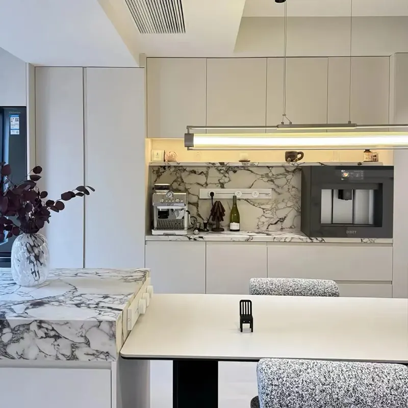 Способность арабескато мраморных кухонных прилавков и островных топов подчеркнуть свет и элегантность в столовых и кулинарных пространствах заставляет их стремиться. Они довольно хорошо подчеркивают деревянные шкафы или высокие глянки.