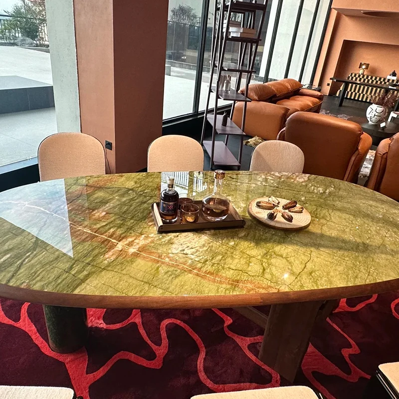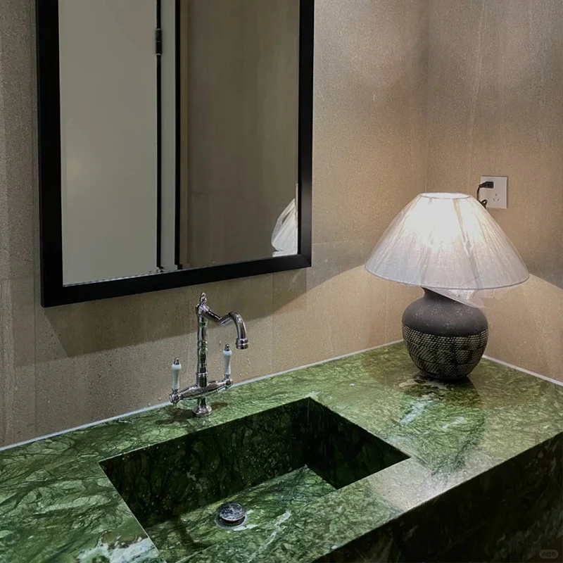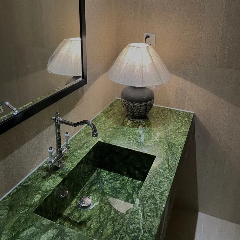 Пользовательские элементы дизайна: столешницы, столы, скамейки, скульптуры или другие специальные предметы могут дать любой домашней атмосферу необычную и эксклюзивную собственность Ming Green Marble.