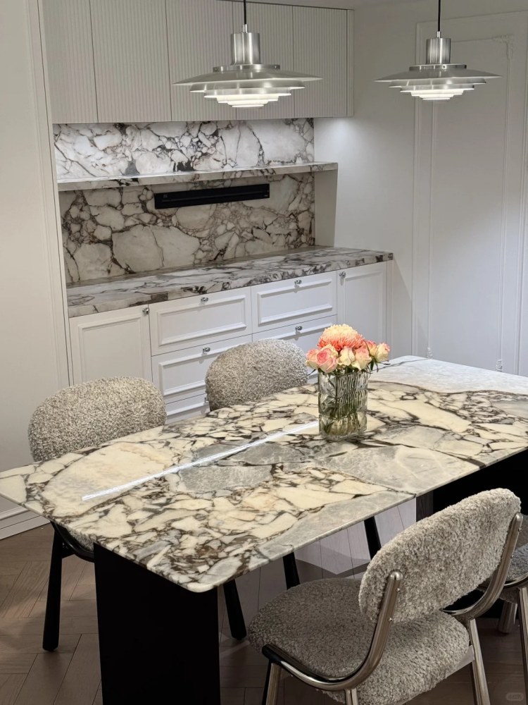 Но если ваш дом склоняется к классическому европейскому стилю или богатому новому китайскому стилю, темный камень - звезда. Темные Серые и Вин Камни с тяжелым натуральным веной хорошо подходят для того, чтобы держать свои собственные среди резного дерева, антикварной мебели и тонкой отделки. ТемныйМраморные столешницыНа кухне темный мраморный журнальный столик в центре гостиной или темный мраморный пол в изогнутом коридоре - все это приносит изысканность и глубину.